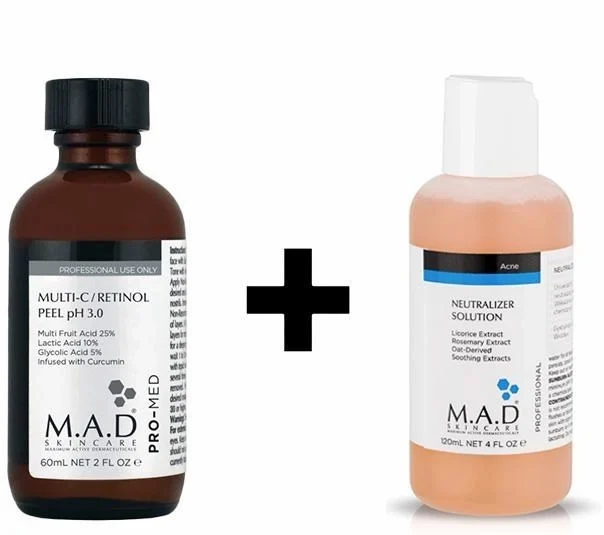 اسید مولتی سی رتینول ام ای دی (M.A.D) یکی از پیشرفتهترین و مؤثرترین محصولات لایهبرداری است که برای درمان مشکلات پوستی مانند چین و چروکها، هایپرپیگمانتاسیون و آسیبهای ناشی از آفتاب طراحی شده است. این پیلینگ ترکیبی از مواد فعال و مفید برای پوست است که بهطور همزمان سلولهای مرده پوست را لایهبرداری کرده، تولید کلاژن را افزایش میدهد و باعث شادابی و درخشندگی پوست میشود.
